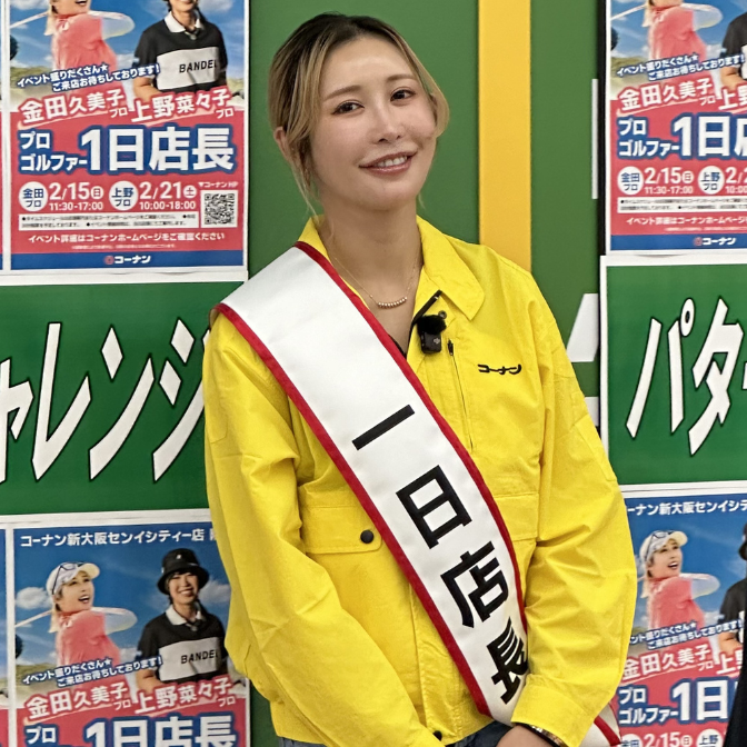 ⚪︎‥金田プロは2月15日に、ホームセンターコーナン新大阪センイシティー店で一日店長を務めました。